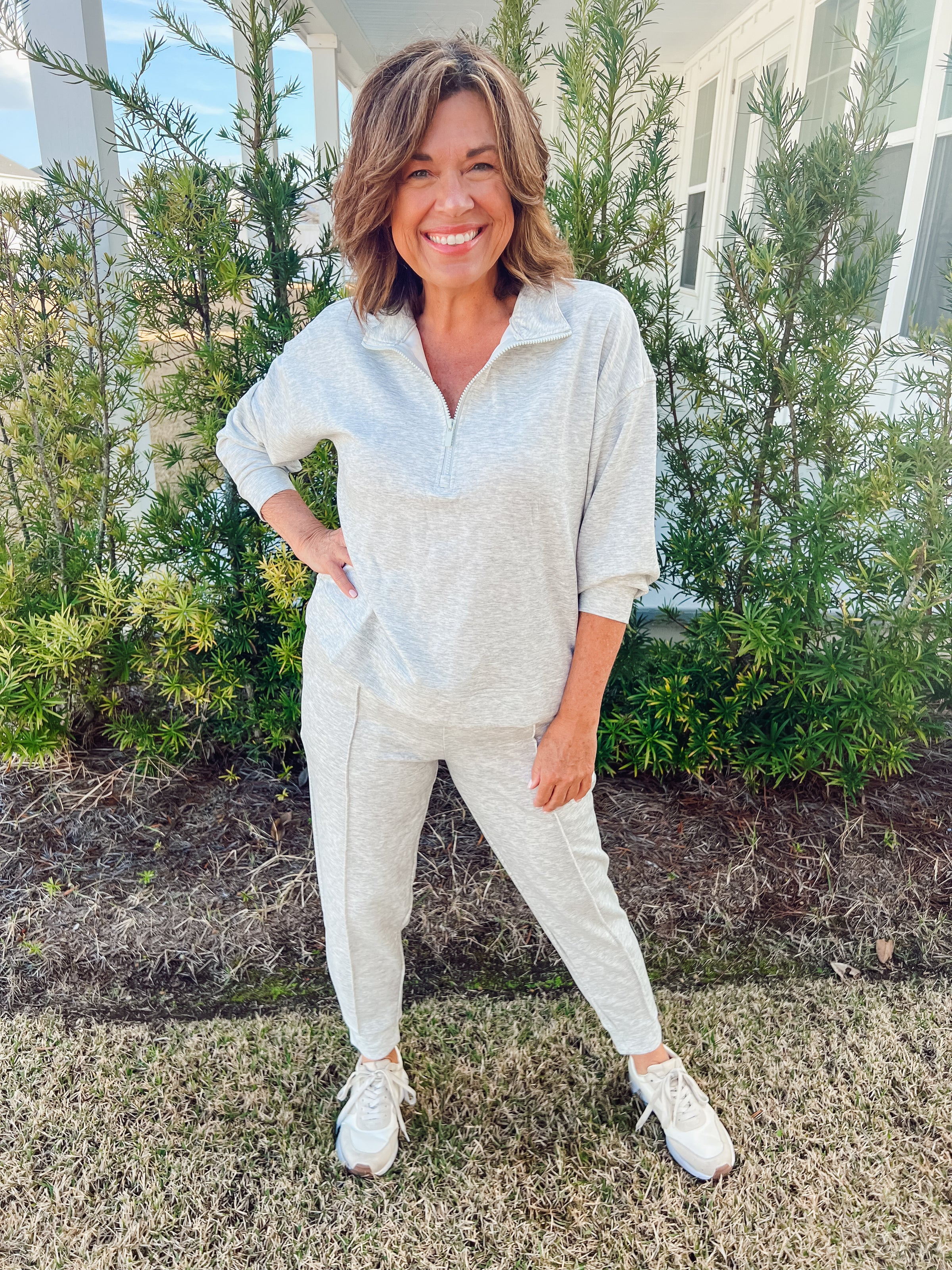Half zip pullover and jogger set.