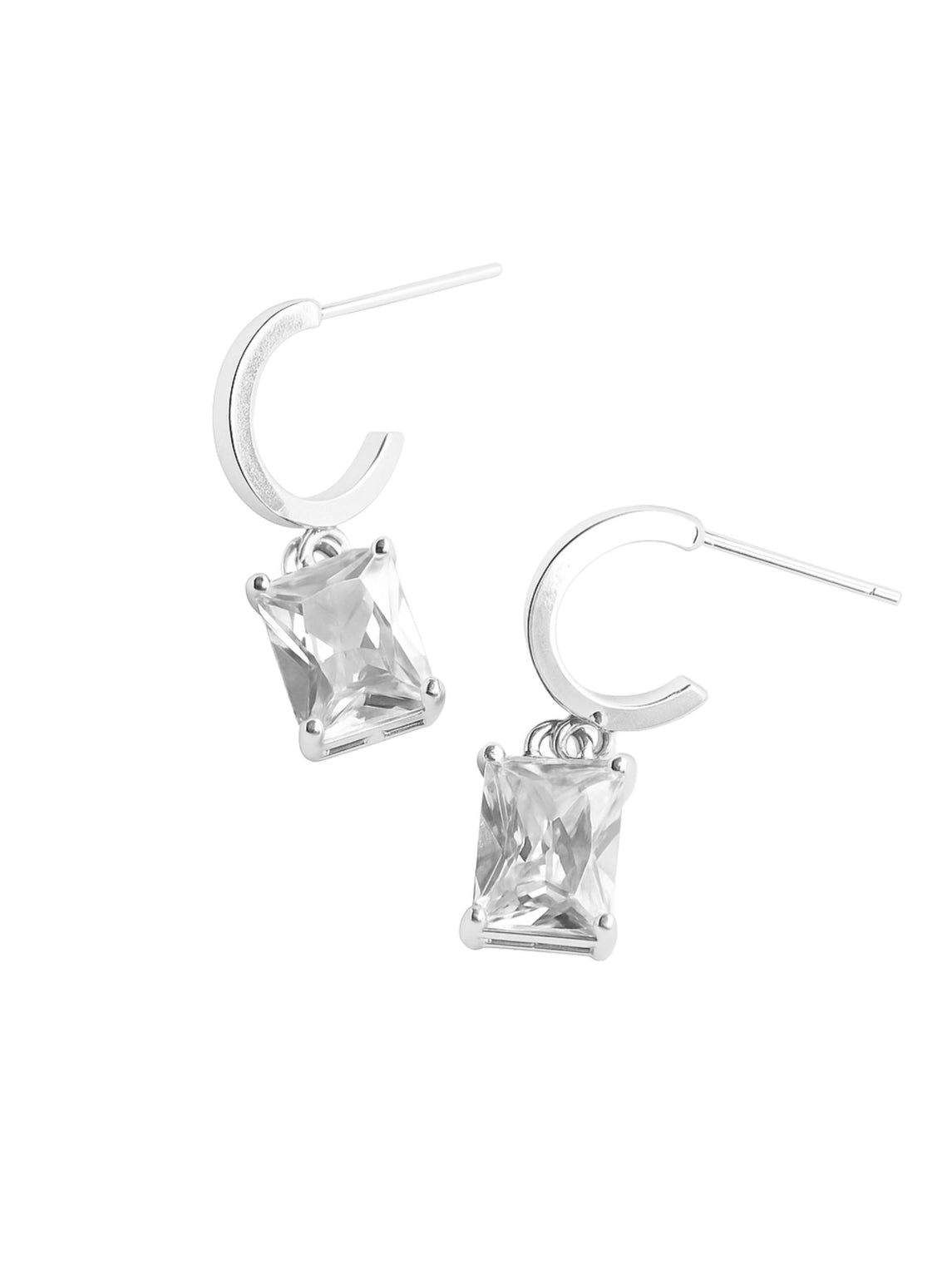 Timeless grace meets modern edge in our Prism Huggies. Crafted with refined elegance and modern style, these huggie earrings perfectly complement your jewelry collection. These earrings feature a bold princess-cut CZ stone that elevates sparkle with a hint of movement. Set beneath the polished huggie hoop earrings, they combine clean lines with a structured silhouette. Wear these earrings with Zaza Earrings to add everyday glamour, or style these mini huggie hoops alone for a subtle swing and radiant shine.