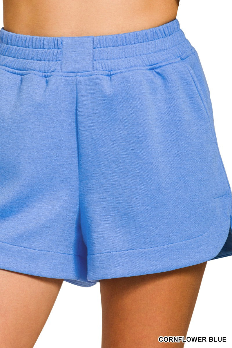 Our #1 selling scuba set!! Everyone loved the pant version so we of course had to order the short version! Our Scuba Set fits with a high neck features a half zip top with dolphin shorts that are drawstring and elastic waist with side pockets.